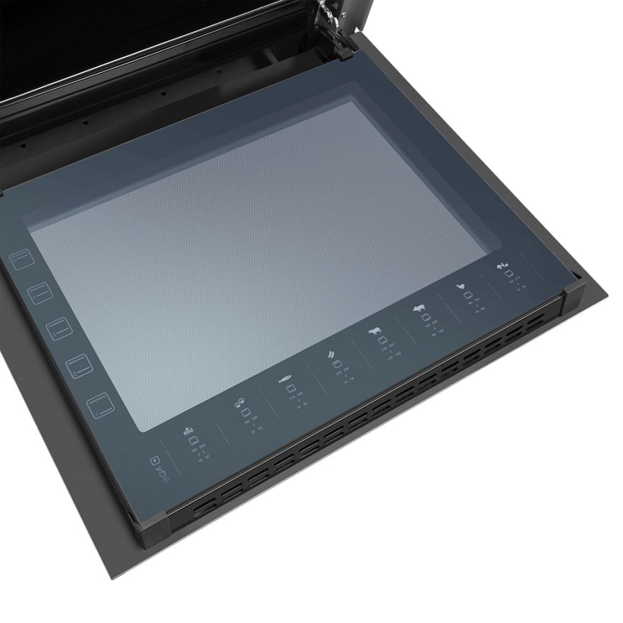 Поворотные переключатели и интуитивно понятная сенсорная панель управления позволяют легко управлять прибором. Всего несколькими касаниями пальца вы можете регулировать настройки приготовления, устанавливать таймеры и получать доступ к другим функциям. Цифровой дисплей обеспечивает ясную видимость выбранных настроек.