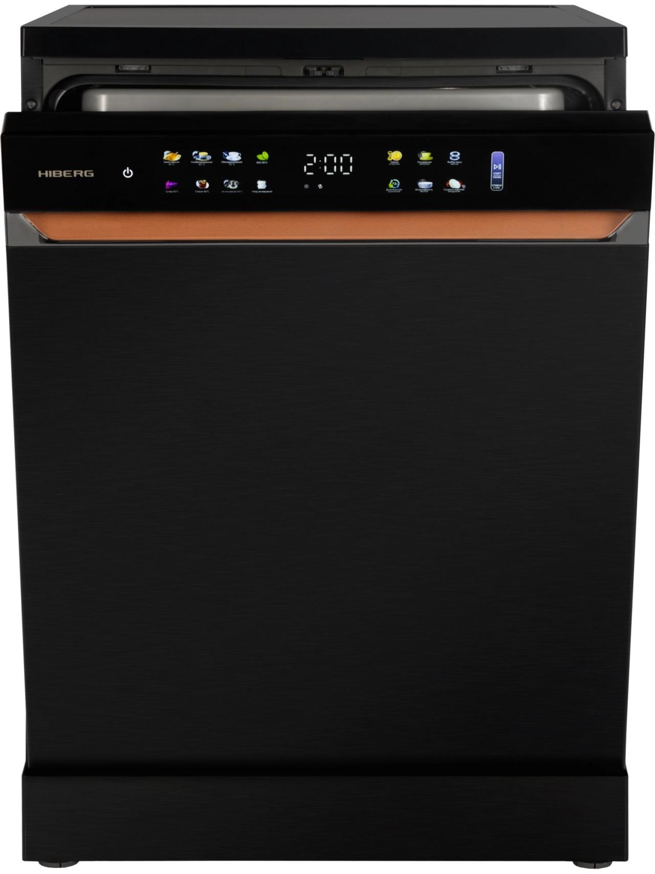 Для комфорта предусмотрены выбор зоны мытья (в одной корзине), таймер отсрочки, цветная сенсорная панель с большим дисплеем. Премиальный дизайн подчеркнут стильными кожаными вставками и единой стилистикой со стиральной машиной HIBERG I-DDQ10-814 B. За безопасность отвечают полная защита от протечек AquaStop и блокировка от детей. Гарантия — 2 года.