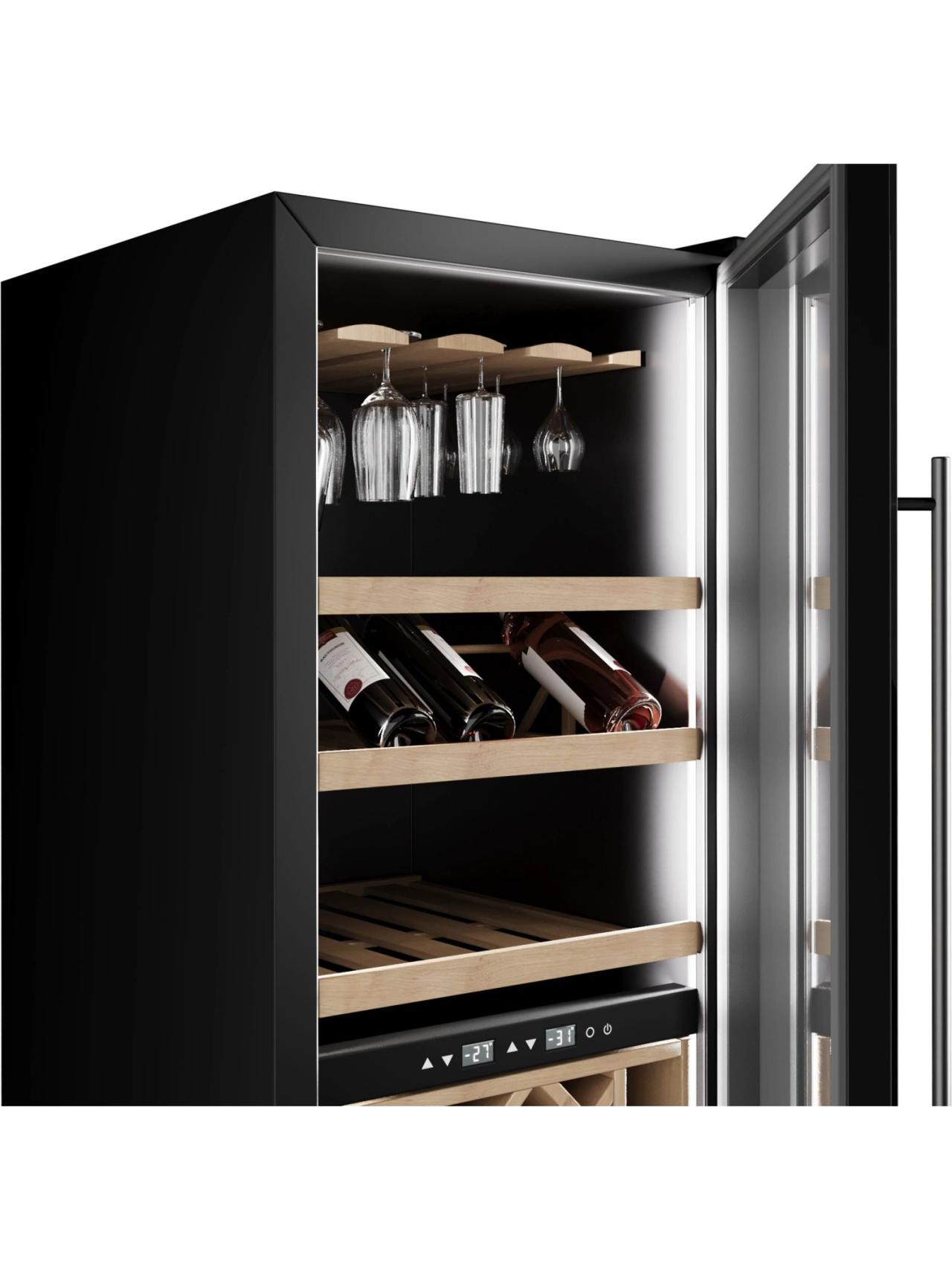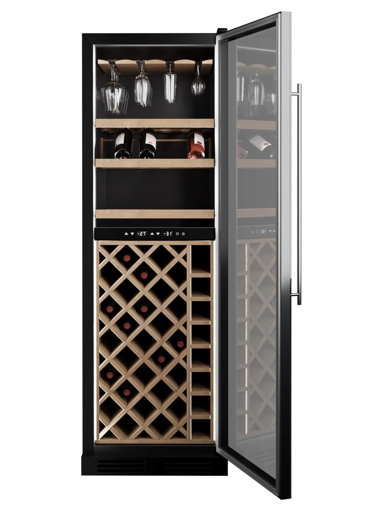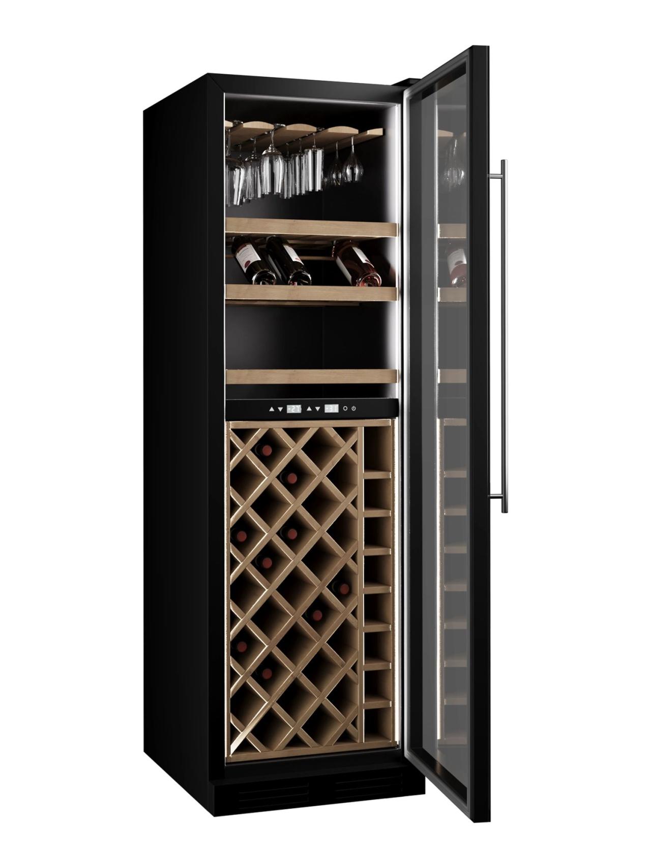 Эргономика продумана для крупной подборки из 90 бутылок: есть демонстрационные решения для красивой выкладки, телескопическая буковая полка для удобного доступа, отдельная полка для бокалов и секционный стеллаж. В повседневной эксплуатации приятно ощущается фирменный комфорт — Push to Open обеспечивает лёгкое и бесшумное открывание одним касанием, а замок с ключом помогает контролировать доступ в коммерческих пространствах.