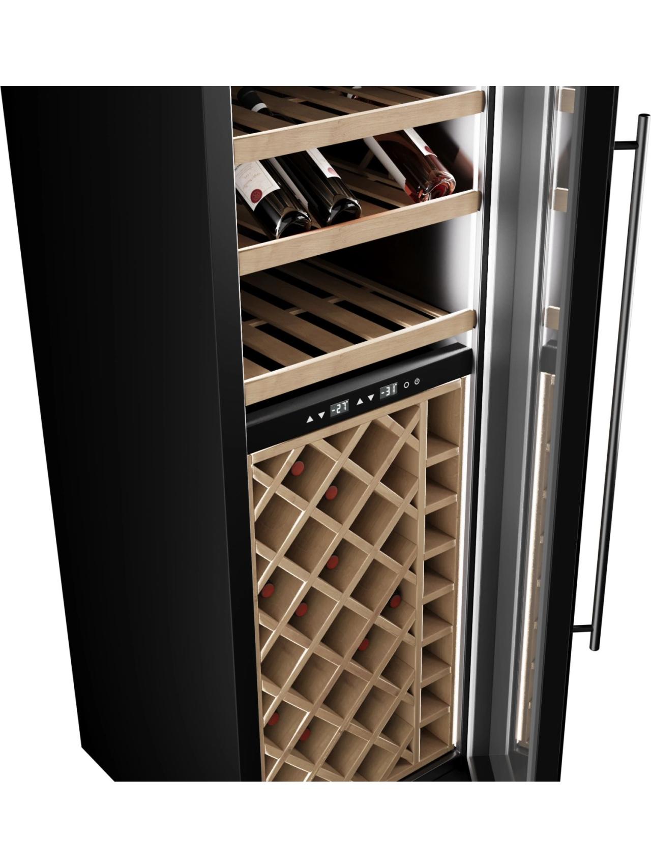 Коллекционерам понравится двухзонное охлаждение, позволяющее одновременно держать белые и красные вина в своих режимах. Широкий диапазон температур 5–20 °C помогает корректно подбирать условия под разные сорта, от игристых до выдержанных красных, сохраняя баланс кислотности и ароматический профиль.